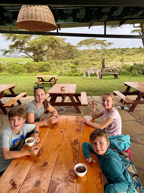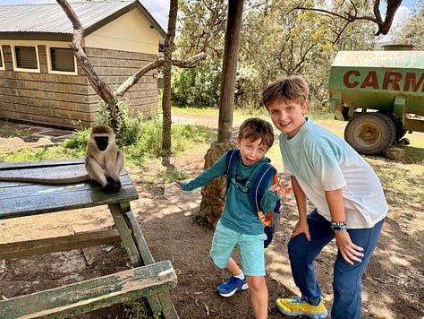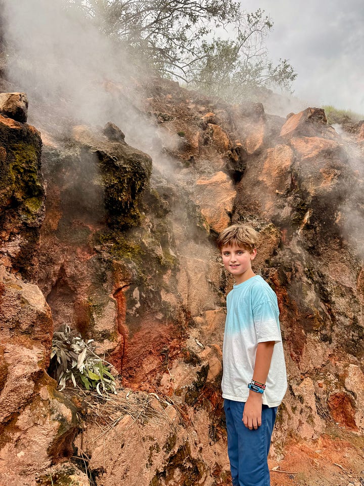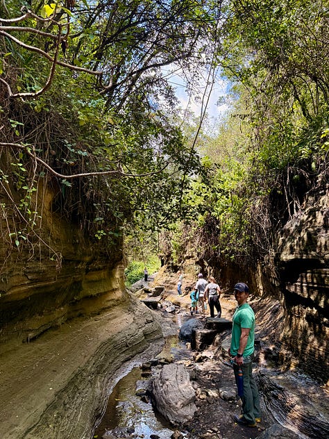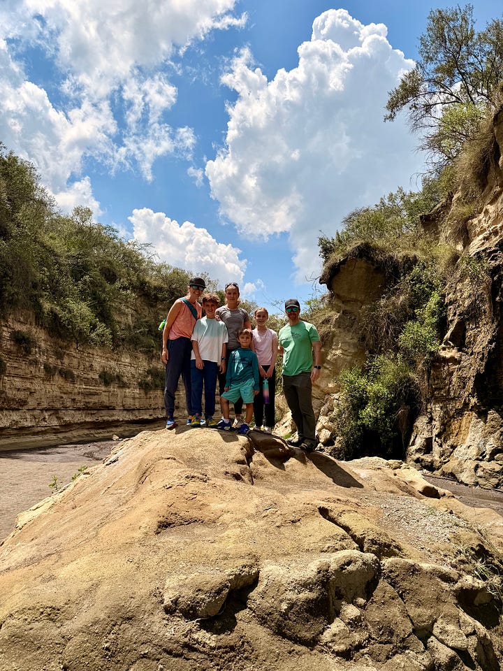 While at Crescent Island, we explored Hell’s Gate National Park. These photos are from the Ol Njorowa Gorge hike that the kids said was one of their favorite things we’ve done so far in Kenya! The steep, winding canyons have been shaped by water and geothermal activity. You see steam rising from natural vents and hot springs, a visible sign of the intense underground heat. This geothermal energy is harnessed nearby at the Olkaria power stations, which help produce a significant portion of Kenya’s electricity.